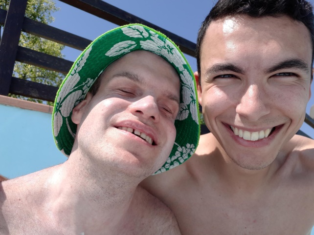 Appena arriviamo ci sistemiamo sulle sdraio con i nostri asciugamani, ci spalmiamo la crema solare e siamo pronti per affrontare la piscina con le onde. Si può accedere con la carrozzina, fino a mezza ruota. Una sirena avverte ogni qualvolta arriva l'acqua alta. Anche chi è in carrozzina può alzarsi, grazie agli operatori, e farsi una nuotata, oppure può sedersi sul bordo e rinfrescarsi i piedi. Verso le 12.00 si inizia a mangiare insieme sotto l’ombrellone. Il pranzo al sacco è fornito dalla nostra mensa: panini, frutta e acqua a volontà. Se c’è tempo si fa anche una partita a carte oppure una bella siesta, poi nel pomeriggio si ritorna a Piacenza.